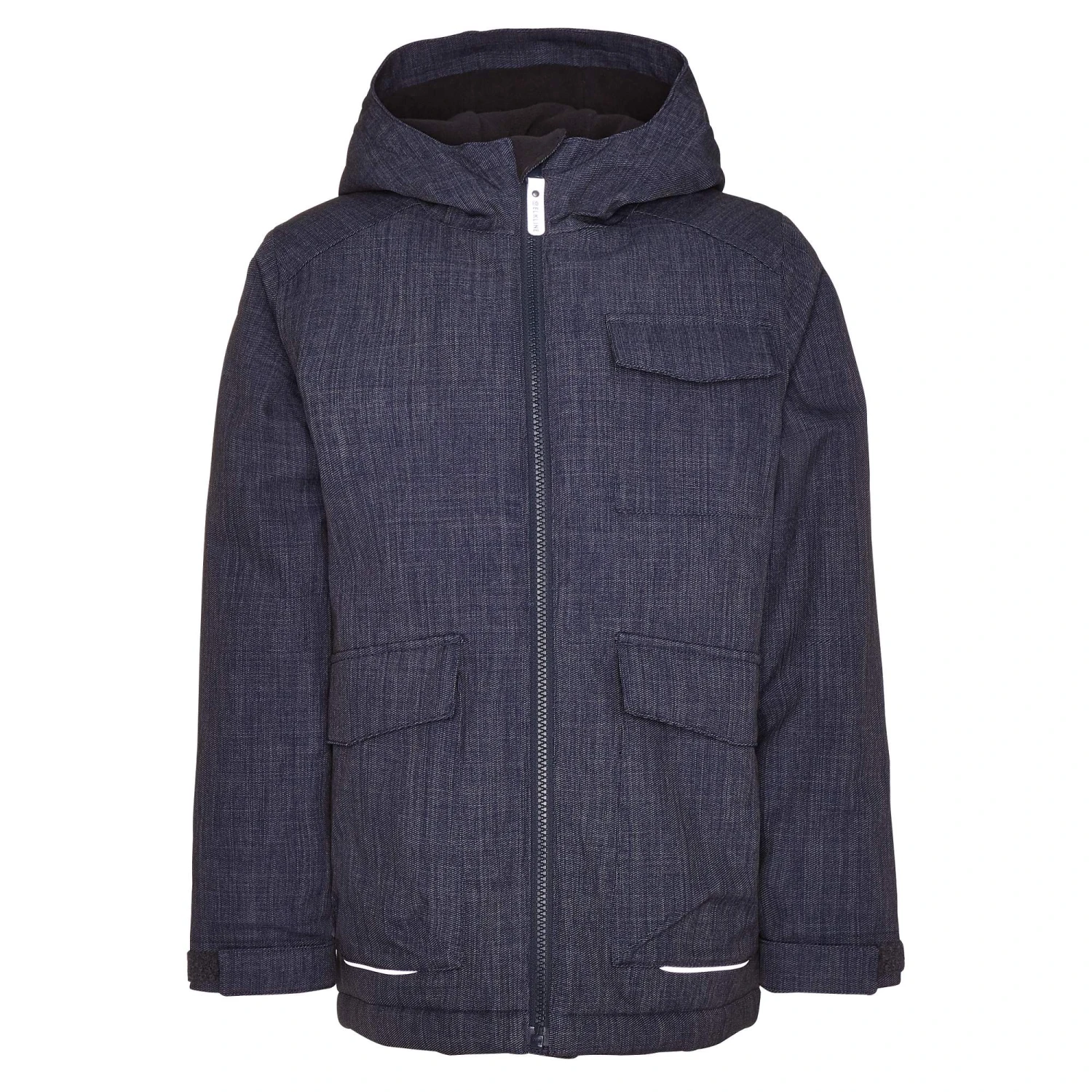 Die Jacke in cooler Jeans-Optik kann mit einer Wassersäule von 10.000 mm aufwarten und trotzt damit auch dem hartnäckigstem Schietwetter. Dabei ist das Material so atmungsaktiv, dass die kleinen Rabauken auch beim wilden Toben ein angenehmes Klima in der Jacke haben. Die recycelte Kunstfaser-Isolierung sorgt für angenehme Wärme an kalten Wintertagen – damit ist Zähneklappern in dieser Jacke eine echte Herausforderung! Durch das glatte, weiche Innenmaterial lässt sich die Jacke problemlos über raue Fleece– oder Wollpullover ziehen.
